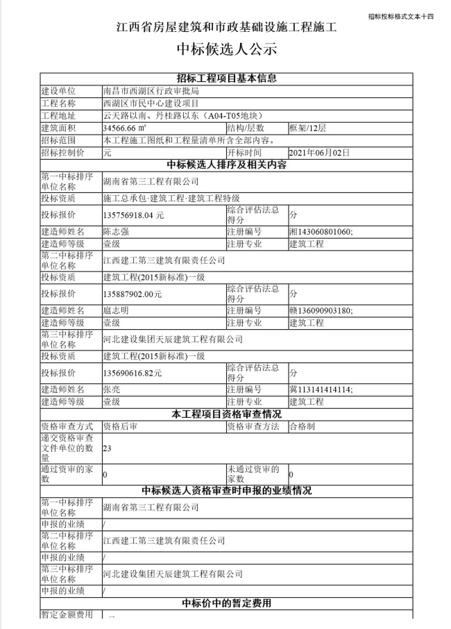 西湖區(qū)市民中心建設(shè)項(xiàng)目中標(biāo)公示