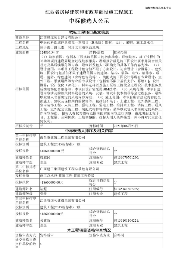 中醫(yī)藥科創(chuàng)城仲景雅苑一期項目(B地塊)勘察、設(shè)計、采購、施工總承包中標(biāo)公示