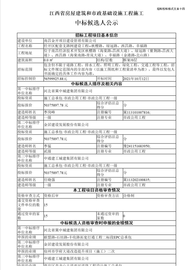 經(jīng)開區(qū)配套支路網(wǎng)建設(shè)工程--秋櫻路、綠冠路、西昌路、幸福路中標公示