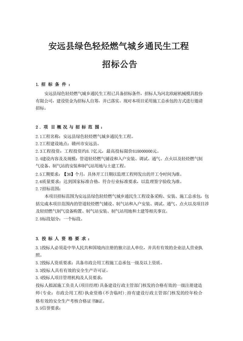 安遠(yuǎn)縣綠色輕烴燃?xì)獬青l(xiāng)通民生工程招標(biāo)公告